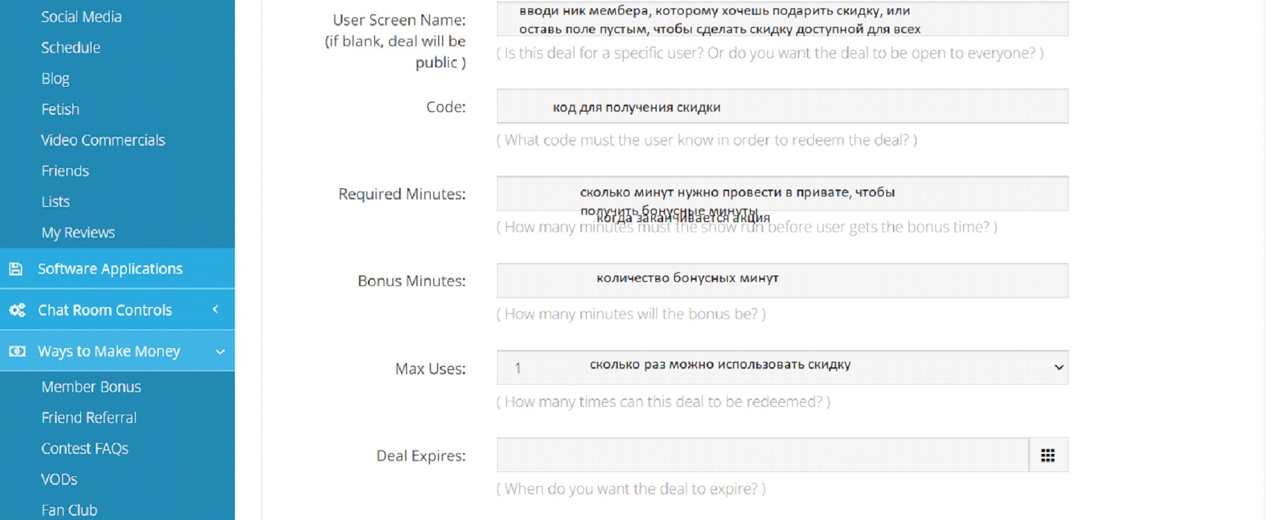 для мемберов по вкладке Ways to make money-Performer deals-Create a new deal.