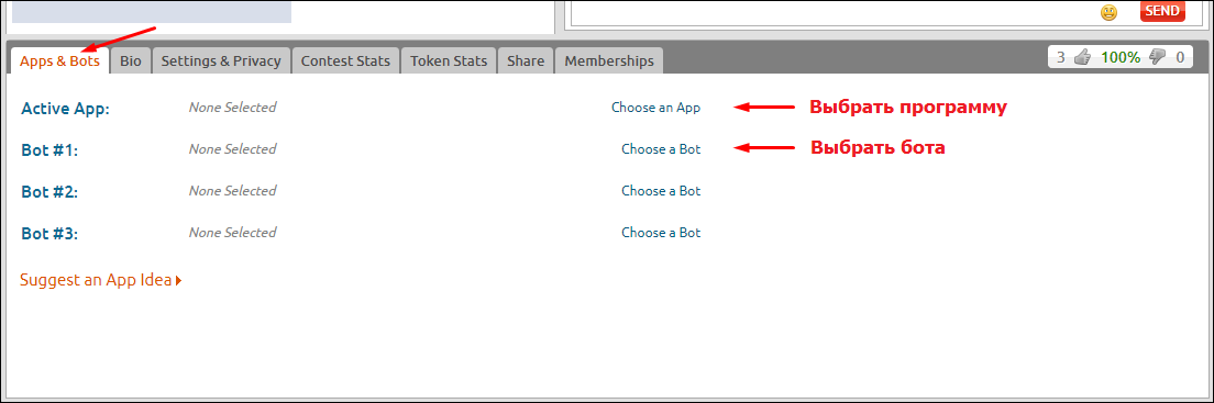 Вкладка "Apps & Bots".