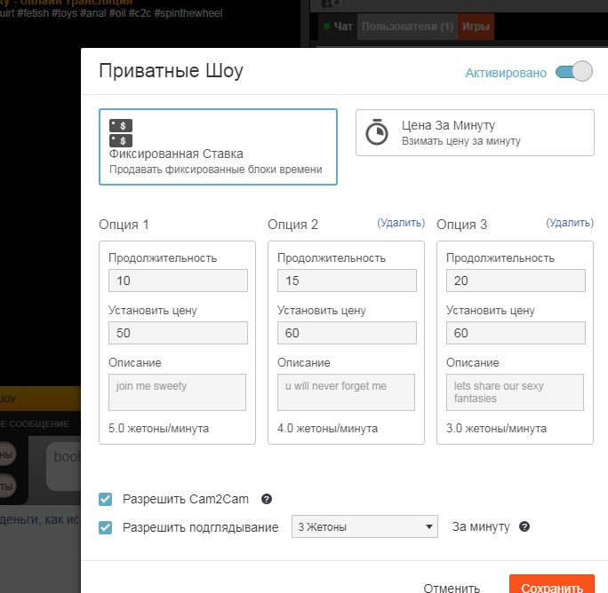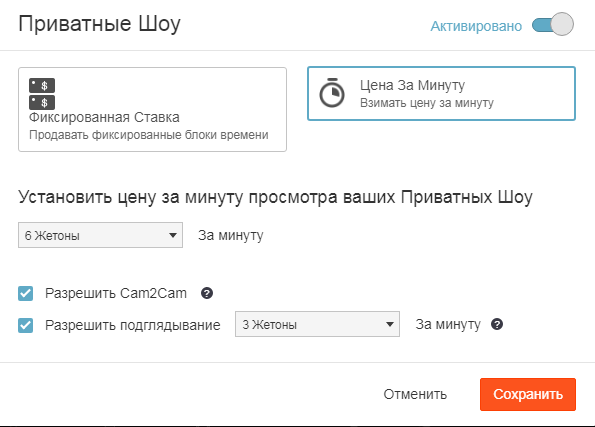 И для моделей и для клиентов очень выгодно использовать предоплату приватного времени - чем больше время привата тем ниже цена в минуту. Даже 3 токена в минуту, на этом сайте - приличная цена, ведь на том же Чатурбейте - самые долгие и частые приваты бывают у девушек с ценой 6 токенов в минуту, ну а на Кам4, учитывая что цена токена в 2 раза выше, это получается те же 30 центов в минуту - ваш чистый заработок. Можете поэкспериментировать, поставить цену предоплаченного привата и 2 токена, и ниже, к примеру за пол часа и более.